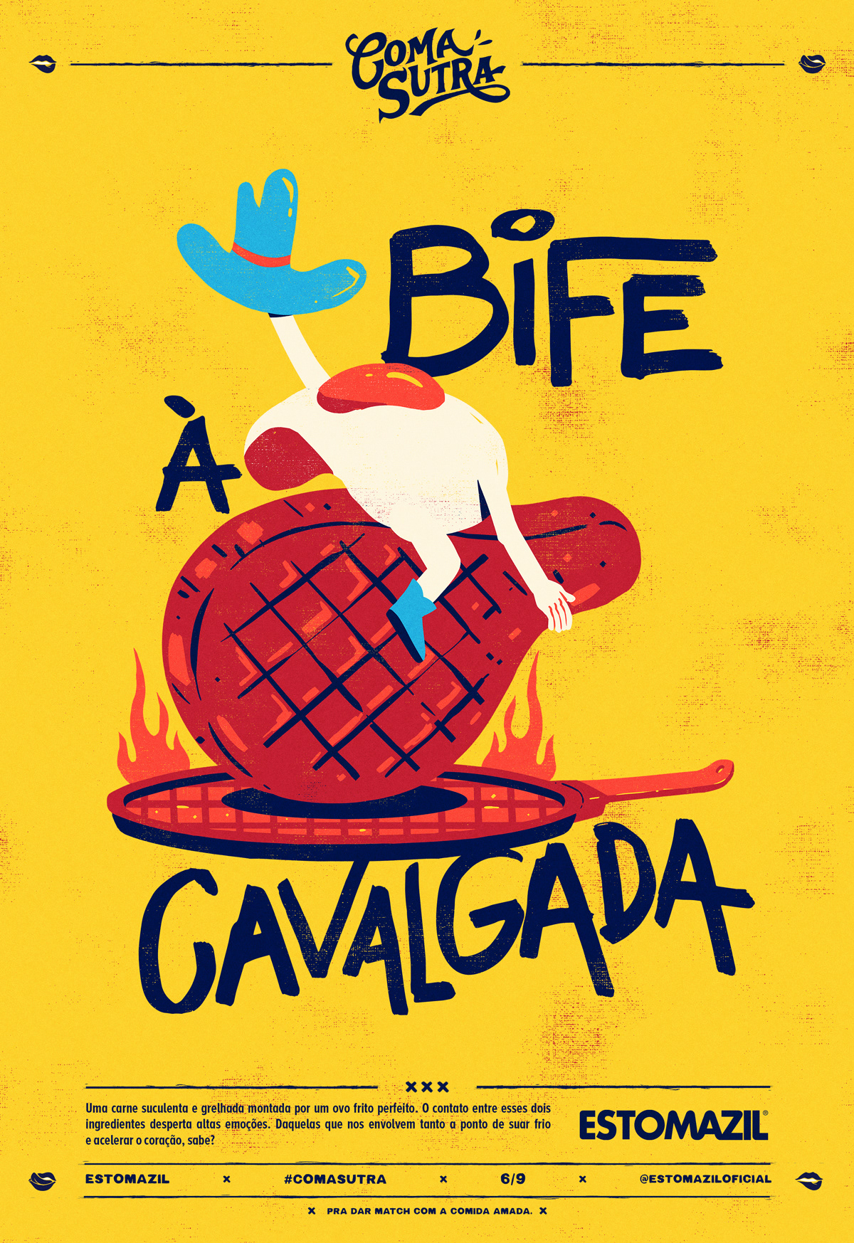 To reinforce the concept, "to match your beloved food", by ESTOMAZIL, we launched COMASUTRA on September 6th (considering the day of sex in Brazil). A delicious illustrated guide for you to have more pleasure when eating the foods you love. 13 positions, or rather, illustrations for you to be inspired by this 6.9th day and match your favorite food as you see fit. The guide makes puns between sexual positions and typical Brazilian foods.
