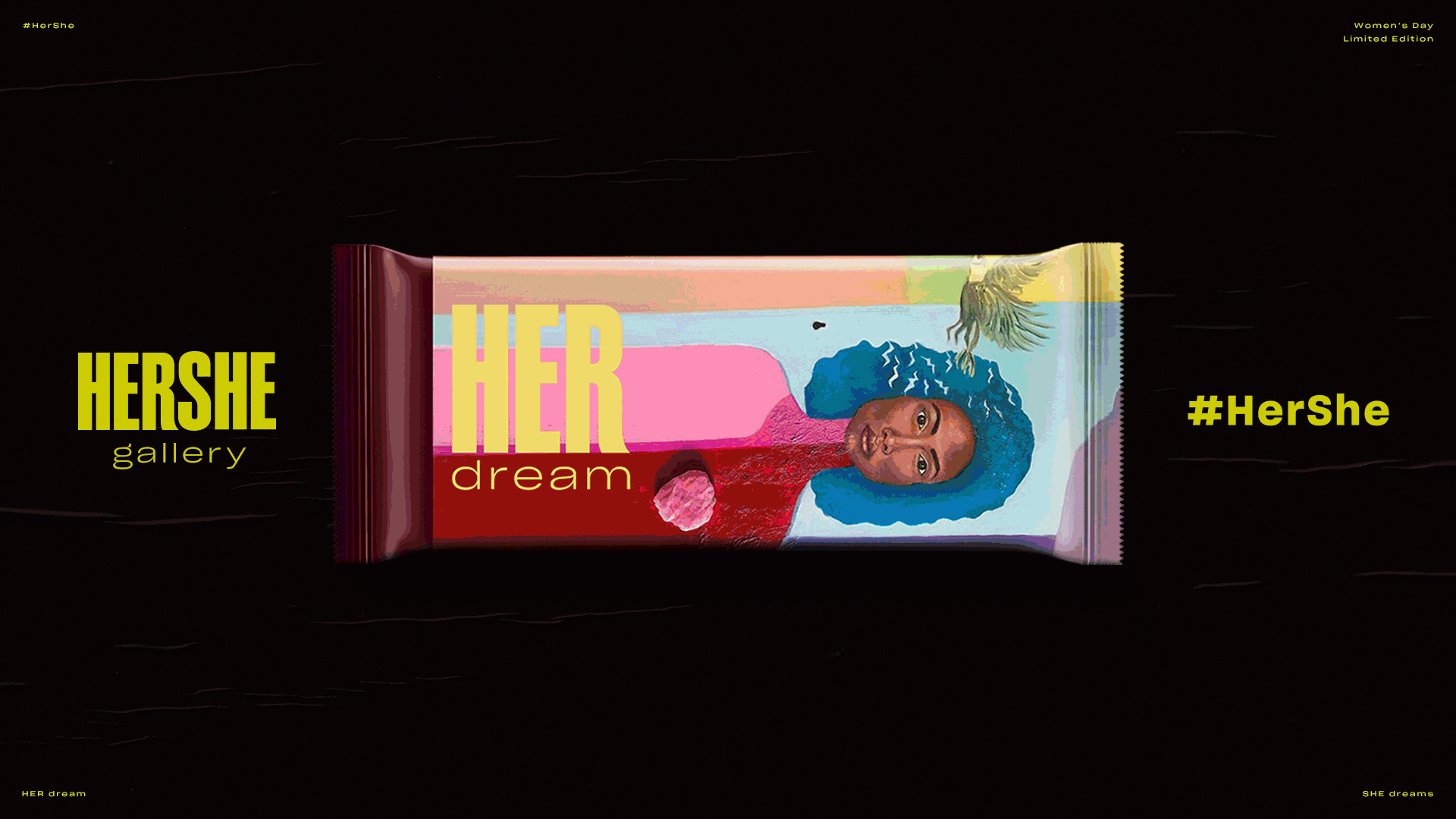 For the second consecutive year, on International Women’s Day, Hershey’s used its packaging to showcase the different talents of women who dream of making a living with their art. Eight artists from different segments were invited to craft something specifically for the Her & She wrappers.