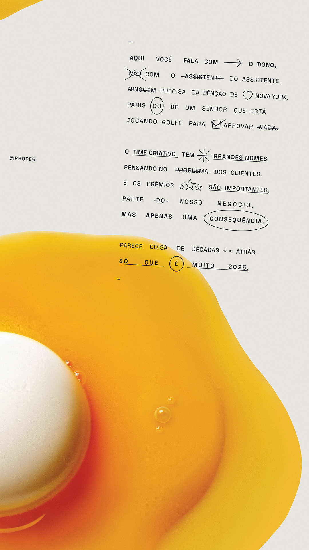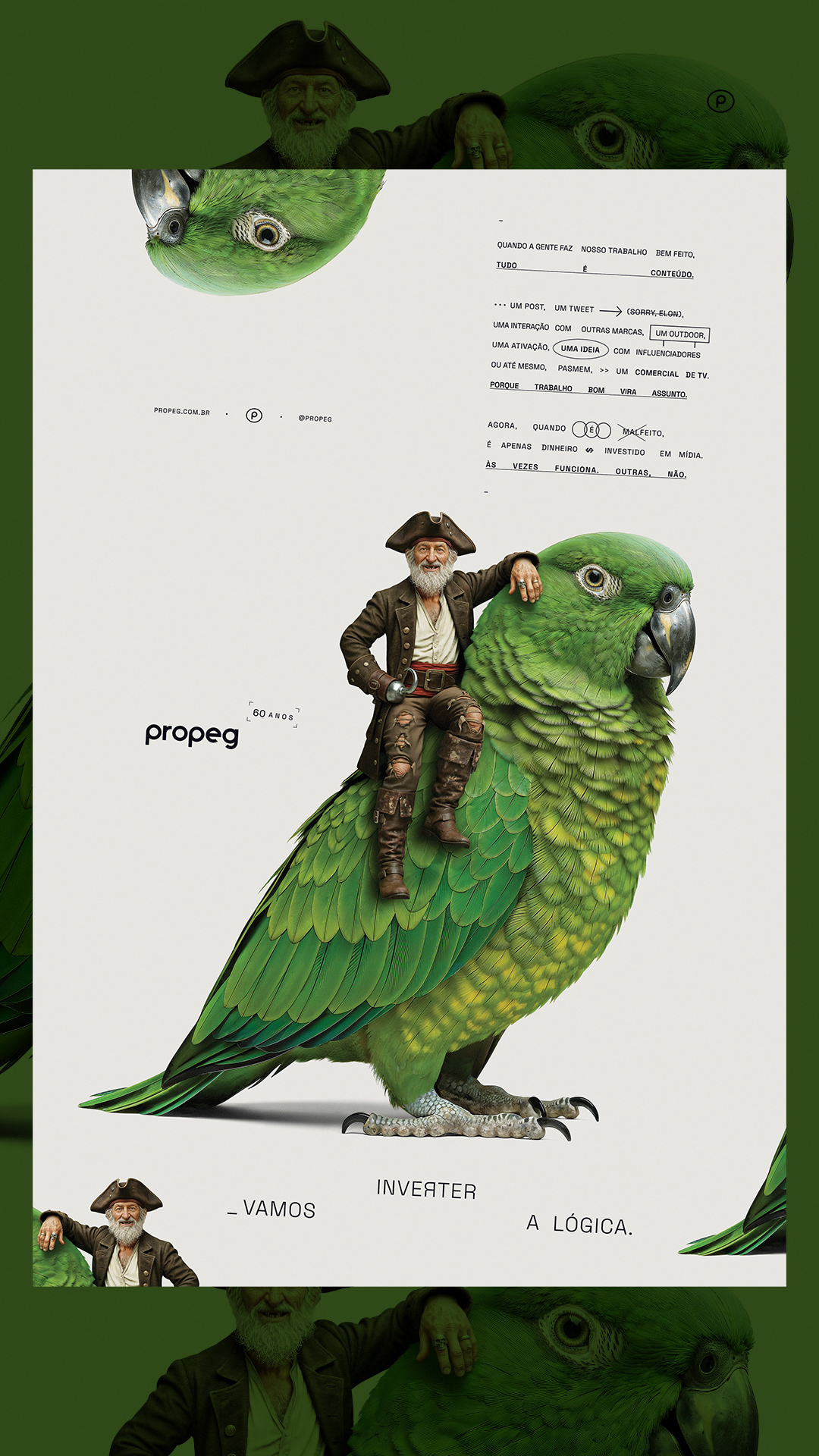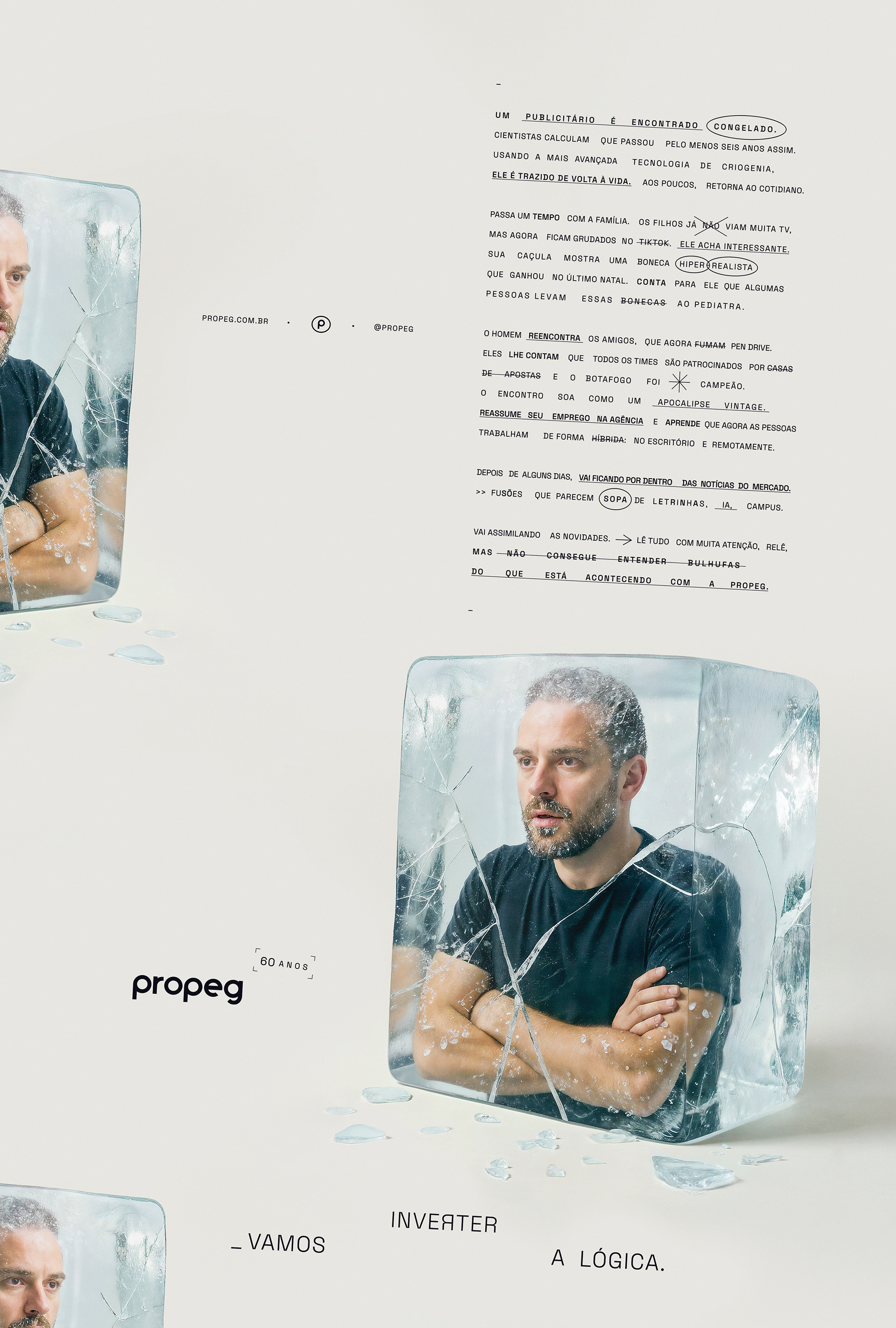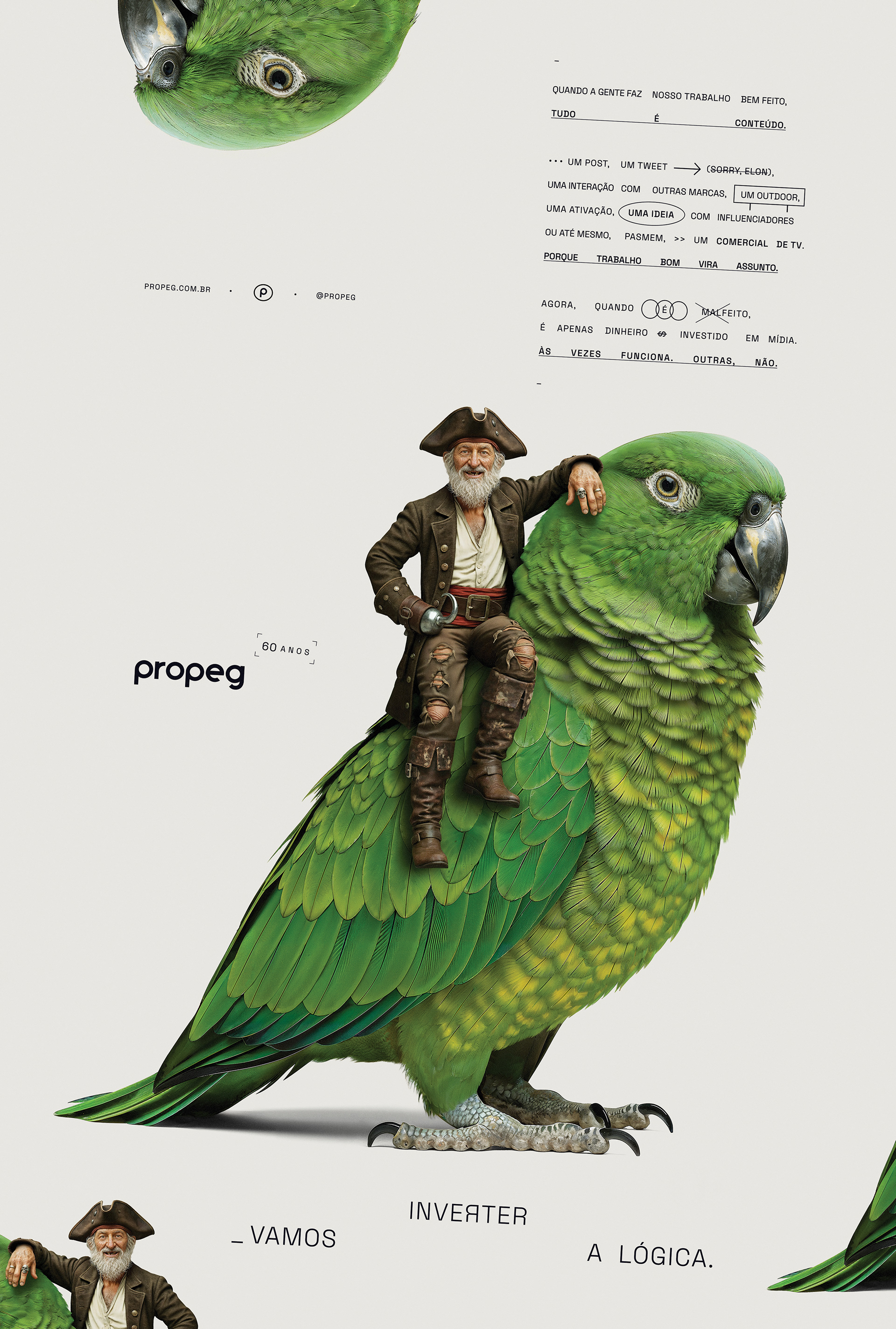 Para comemorar seu 60º aniversário, a Propeg lança um novo posicionamento ousado: “Vamos inverter a lógica”. A campanha reintroduz o DNA criativo da agência por meio de uma série de visuais e filmes surreais e instigantes que literalmente invertem a realidade. Cada peça reflete a missão da agência: desafiar o convencional, repensar o que é possível e lembrar ao setor que a criatividade ainda lidera o caminho. “Após seis décadas, não queríamos celebrar o passado”, diz Propeg. “Queremos questionar o futuro.”